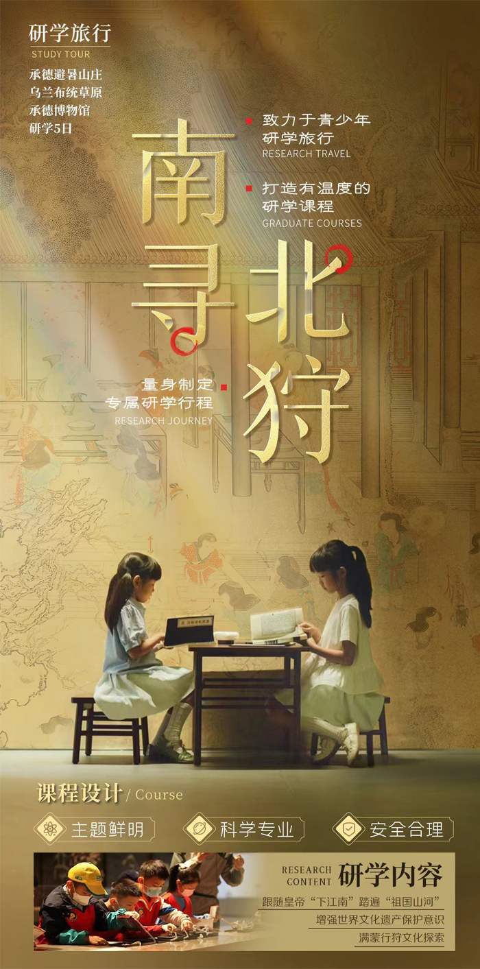 任務(wù)一:尋訪皇帝下江南足跡(避暑山莊內(nèi)的江南仿建)詳見研學手冊 仿嘉興煙雨樓而建的煙雨樓 仿鎮(zhèn)江金山而建的金山亭 仿蘇州滄浪亭而建的滄浪嶼 任務(wù)二:祖國山河之縮影文化遺產(chǎn)融一園 下江南,登山巒,逛平原 園林式皇宮一個時代的歷史見證 尋找“木蘭秋狝圖” 任務(wù)三:探秘“樣式雷”的精益建筑技巧 解鎖文化遺產(chǎn)之建筑藝術(shù)魅力 |