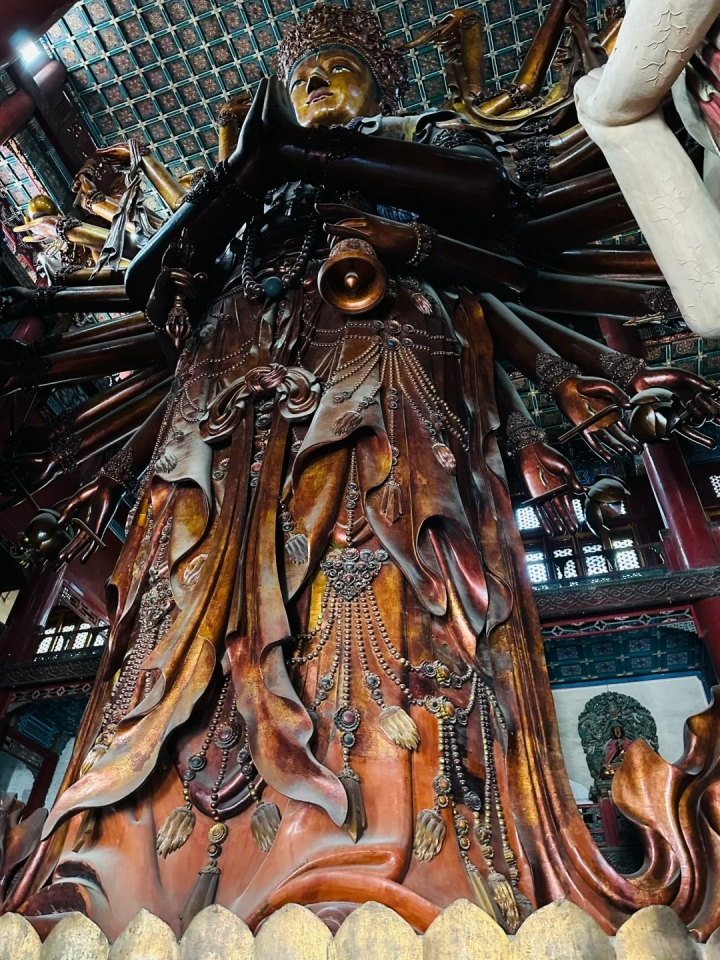 普寧寺在古代文明史的宗教文化中,其建筑藝術(shù)與雕塑藝術(shù),幾乎在國內(nèi)外起同樣舉足輕重的作用,鋪墊著人類文明的藝術(shù)之路。在佛教文化領(lǐng)域中可稱“華嚴(yán)三圣”匯聚;佛、法、僧三寶喇嘛傳承,佛祖故事連壁,菩薩羅漢擠身殿堂。普寧寺不愧為佛教的宮殿,文化旅游的圣地。
