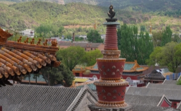 “大乘之閣”,前出六層檐,東西五層檐,內(nèi)部四層,古建藝術(shù)家稱之為國內(nèi)外的罕見的古建藝術(shù)珍品。它體現(xiàn)了中國古建筑巨大藝表現(xiàn)能量,其宏偉壯觀風(fēng)格獨特,又反映出“佛家”的宗教感染力,是其它藝術(shù)無法代替的。大乘之閣總高37.4米,依山形地勢而建,建筑格局變化自然。閣的東西南北又有四大部洲殿和八小部洲殿。日光殿與月光殿在東西相陪,四個角又有四座吉祥喇嘛塔,組成了佛國宇宙世界的須彌山。