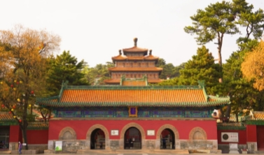 寺廟的后半部是仿西藏桑鳶寺所建。但仿中有創(chuàng),例如:主體建筑五頂贊尖聚攏式樓閣,
