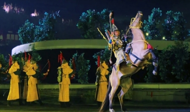 大型實(shí)景演出《鼎盛王朝·康熙大典》是目前全球投資最大、規(guī)模最大,首部以皇家文化為主題的大型實(shí)景演出。今夜在熱河十大名山之一的元寶山為觀眾講述中國歷史在位時(shí)間最長最有作為的皇帝——康熙大帝的傳奇故事。至2011年國慶長假止,演出已獲得圓滿成功。