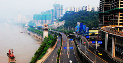 南濱路的建設(shè)初衷是為緩解重慶五大商業(yè)圈之一---南坪商圈的交通壓力,提升主城的通行速度,但由于其地理位置處渝中半島正對(duì)岸,整個(gè)渝中半島剛好完盡收眼底,尤其是解放碑朝天門(mén)等重要地標(biāo)都通覽無(wú)遺。精明的重慶商人立刻意識(shí)到它的商業(yè)價(jià)值