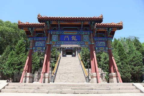 門殿配有大型道教護(hù)法神張?zhí)鞄煹认盗斜诋?,均采用瀝粉描金手法,眾神像栩栩如生,堪稱廟宇壁畫精品。象征道家36洞天的36級(jí)丹階之下 是高大的龍門,與主樓魁星手的才斗、珠筆遙相呼應(yīng)。