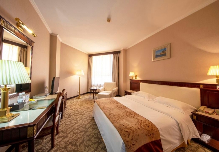 除按星級標(biāo)準(zhǔn)配置用品以外,客房內(nèi)增設(shè)寬帶ADSL上網(wǎng),VOD視頻點播、溫控系統(tǒng)、房間直播電話;餐飲方面菜系齊全,粵、魯、川、淮揚菜為主打,加之北方宮廷菜及當(dāng)?shù)仫L(fēng)味菜,形成各具特色的中式佳肴,西餐有經(jīng)過培訓(xùn)和國外西餐制作經(jīng)驗的廚師料理,可提供西式早餐、正餐及歐美各式服務(wù);設(shè)計風(fēng)格不同的宴會廳、雅間13個,餐位總數(shù)600??赏瑫r滿足中外賓客的需要。前廳服務(wù)功能齊備,完善的計算機管理系統(tǒng)提供快捷服務(wù)。