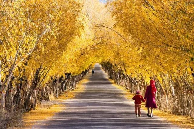 它有如同北疆一樣美麗秋色,金黃的樹葉在輕風吹過的時候,泛著波光,美。